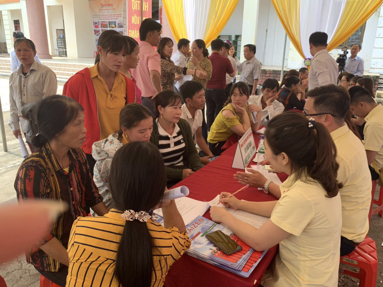 Tại hội chợ việc làm, cán bộ công ty Kaizen cũng đã tận tình giải thích những băn khoăn, thắc mắc mà người dân còn gặp phải trong quá trình làm thủ tục đi XKLĐ. Đồng thời tư vấn cụ thể cho người dân về các thị trường XKLĐ tiềm năng hiện nay, để người lao động có sự lựa chọn phù hợp nhất với sức khỏe, trình độ học vấn và khả năng tài chính của gia đình mình.
