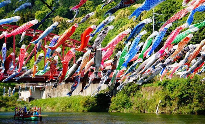 Cứ đến đầu tháng 5 là ở Nhật rợp trời cờ cá chép tung bay trong gió, mỗi nhà treo 3 hoặc 5 cờ, với 5 màu chủ đạo là: xanh lam, đỏ, đen, xanh lá, xanh tím.