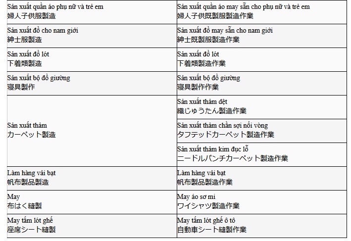 Người lao động Việt Nam khi tham gia XKLĐ Nhật Bản đơn hàng may mặc có thể lựa chọn 13 loại nghề với 22 việc làm dệt may khác nhau.
